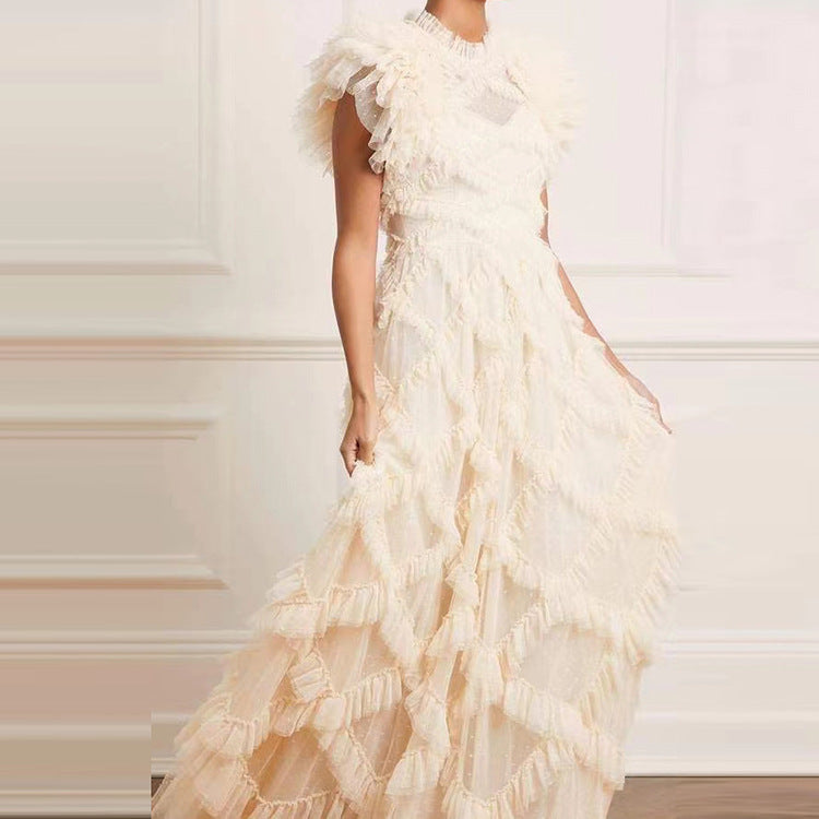 Irregular Round Neck Design : Featuring an irregular round neck design, this dress offers a unique and modern look that stands out from the crowd.