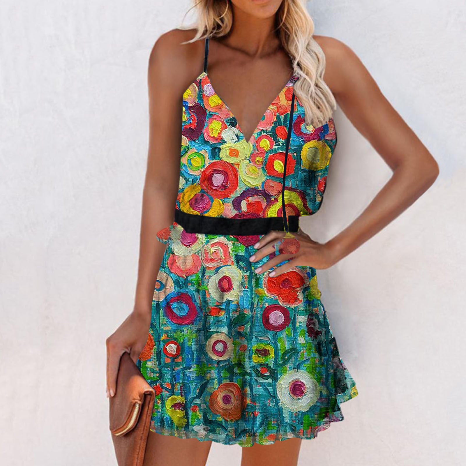 Women's Fashion Short Printed V-Neck Sleeveless Dress