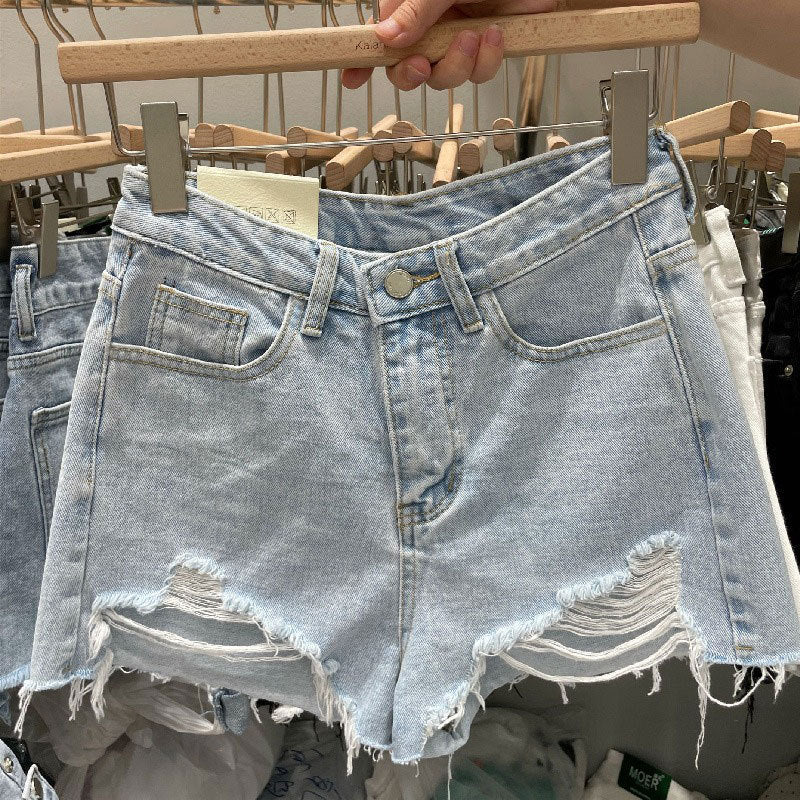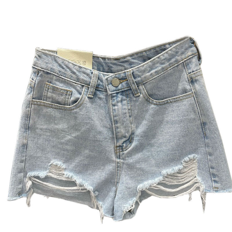 1. Trendy Style: Fashionable denim shorts with a popular ins aesthetic.