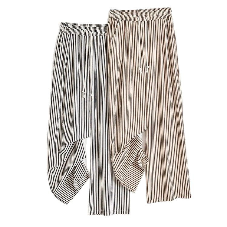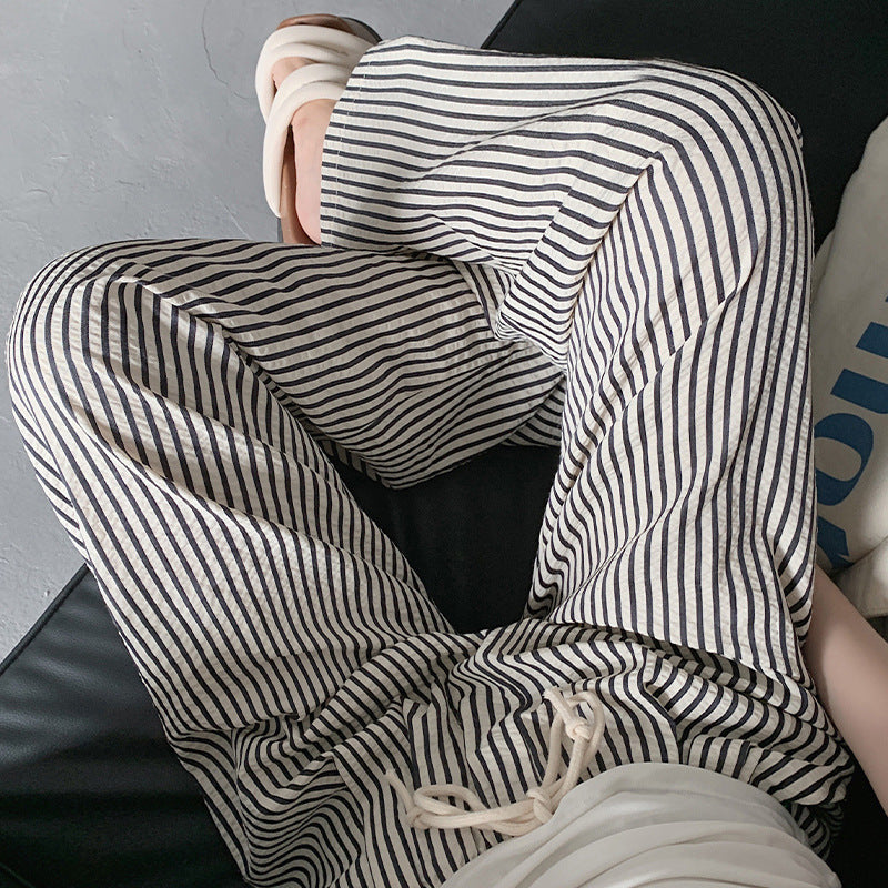 Black and White Vertical Stripe Wide Leg Pants by Glamytek