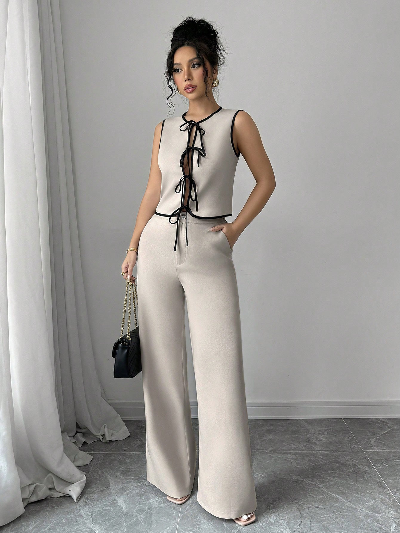 Sleeveless Lace-Up Top Wide-Leg Pants