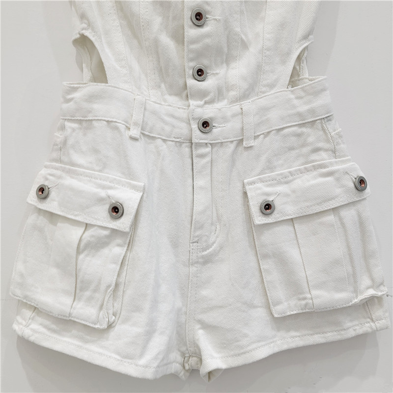 Button-Up Denim Shortalls