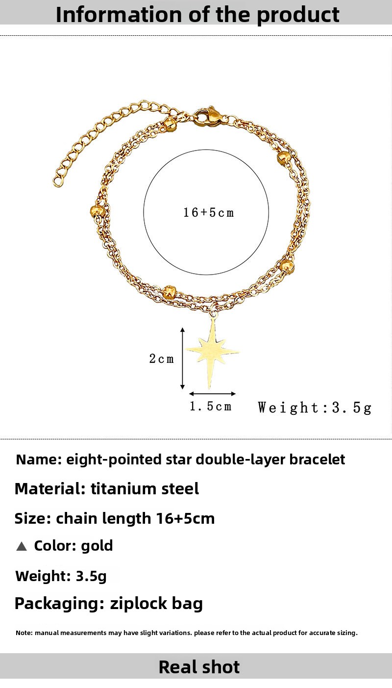 Double-Layer Stainless Steel Eight-Pointed Star Bracelet for Women
