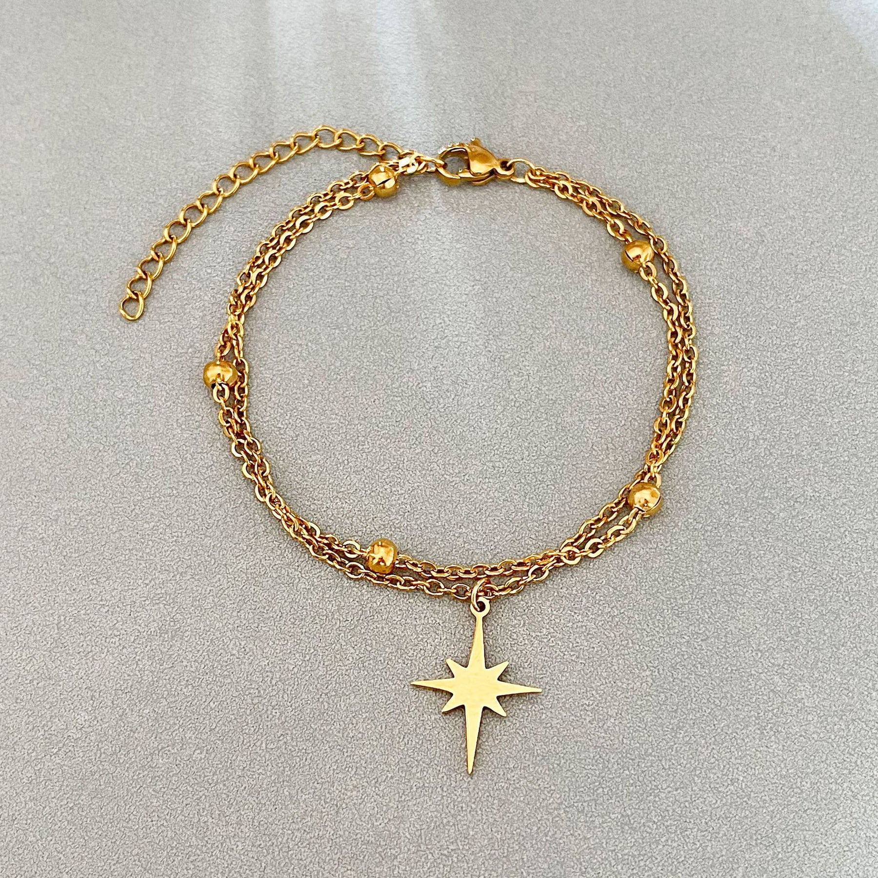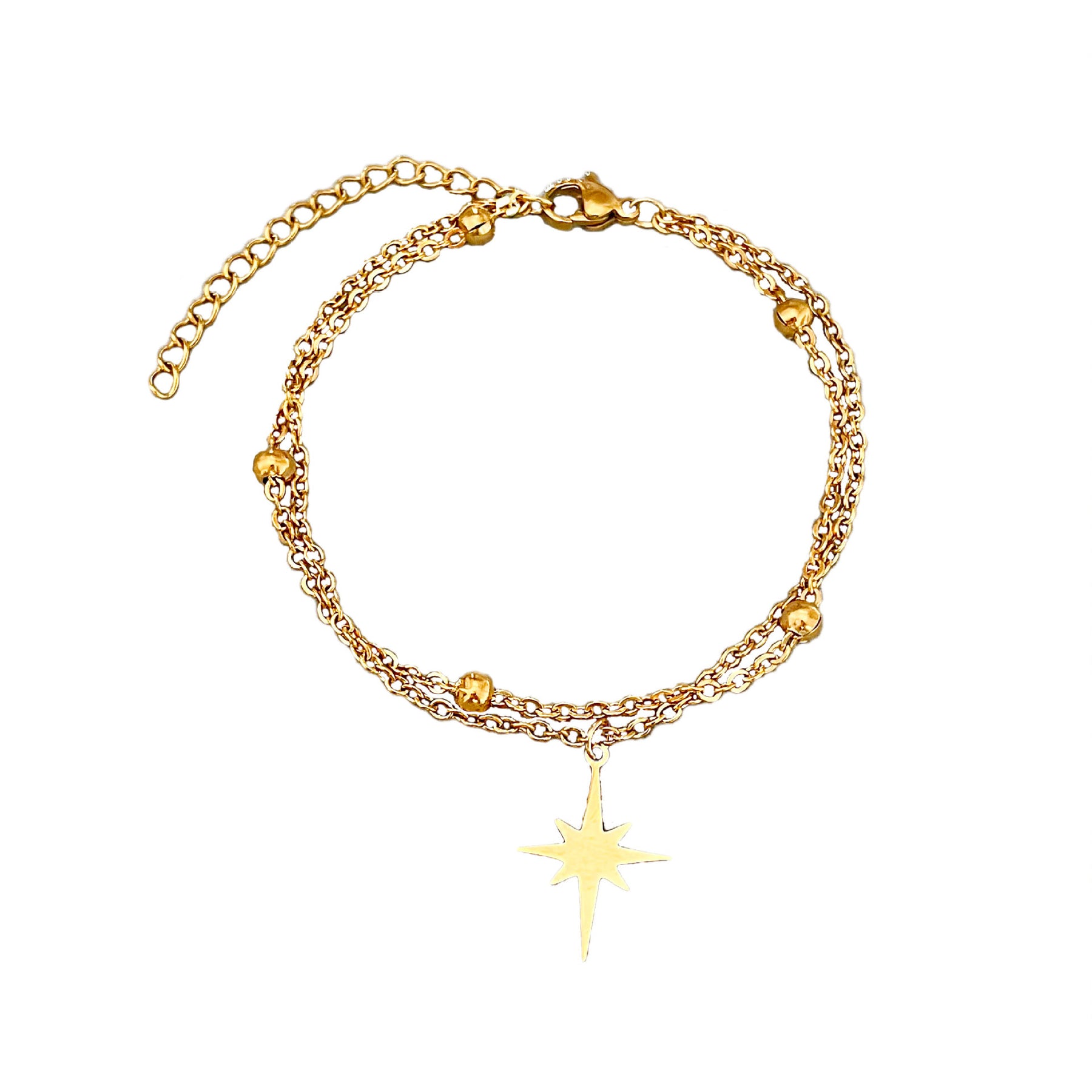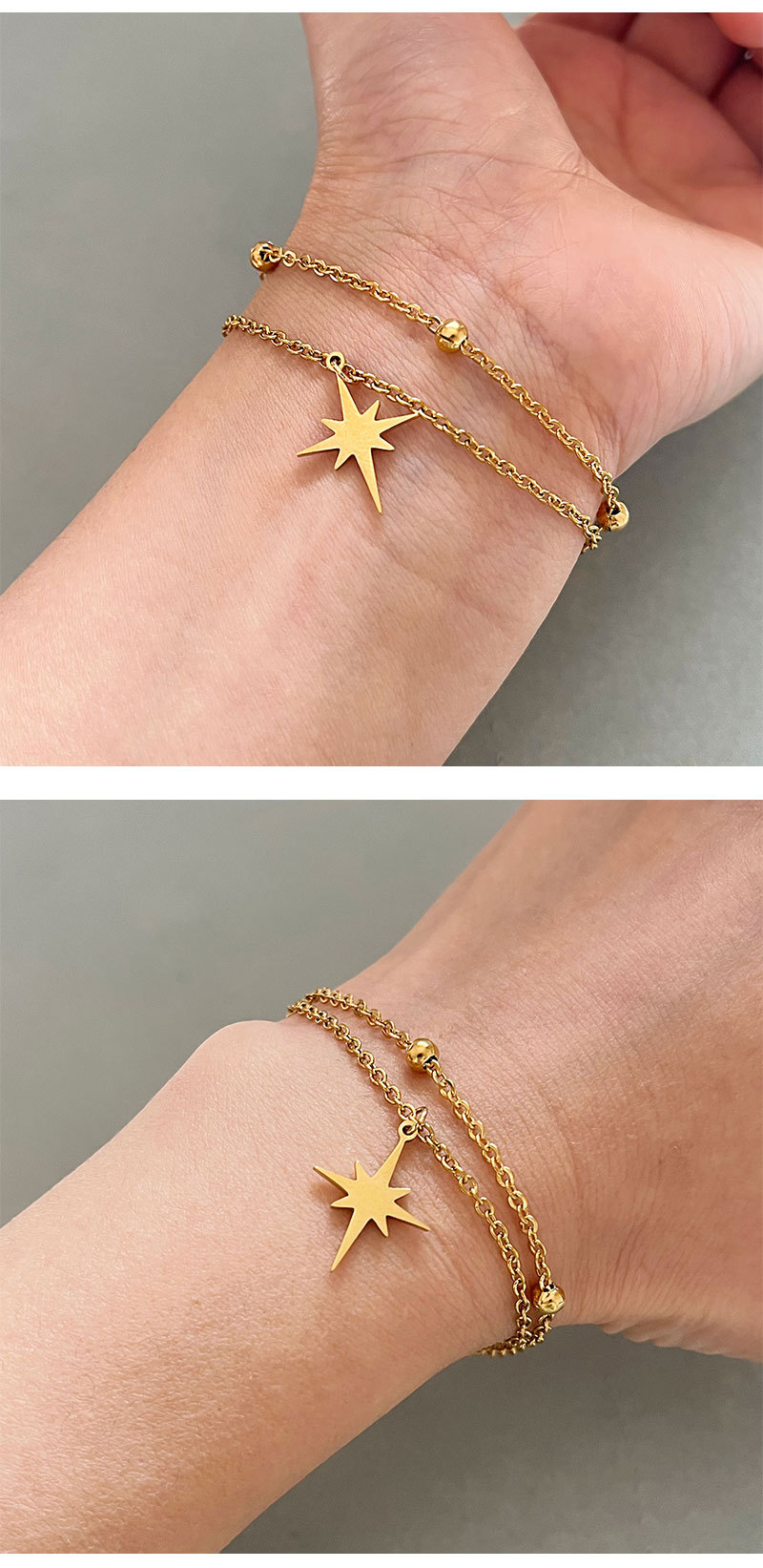 Double-layer design: Elegant and durable stainless steel bracelet with a unique eight-pointed star motif.