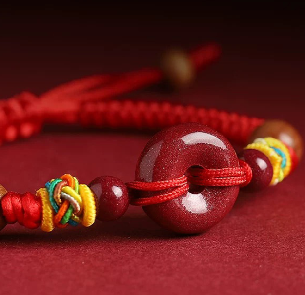 Symbolic Design: Features a cinnabar peace buckle and peach wood elements, symbolizing safety and good luck.