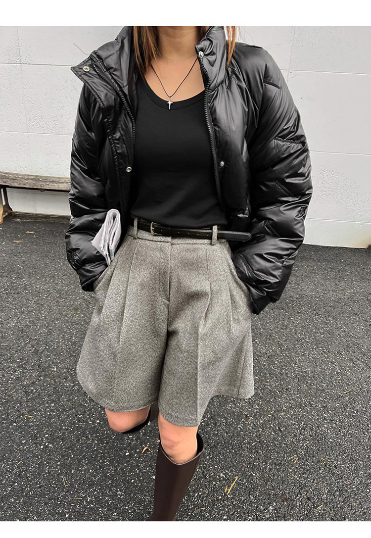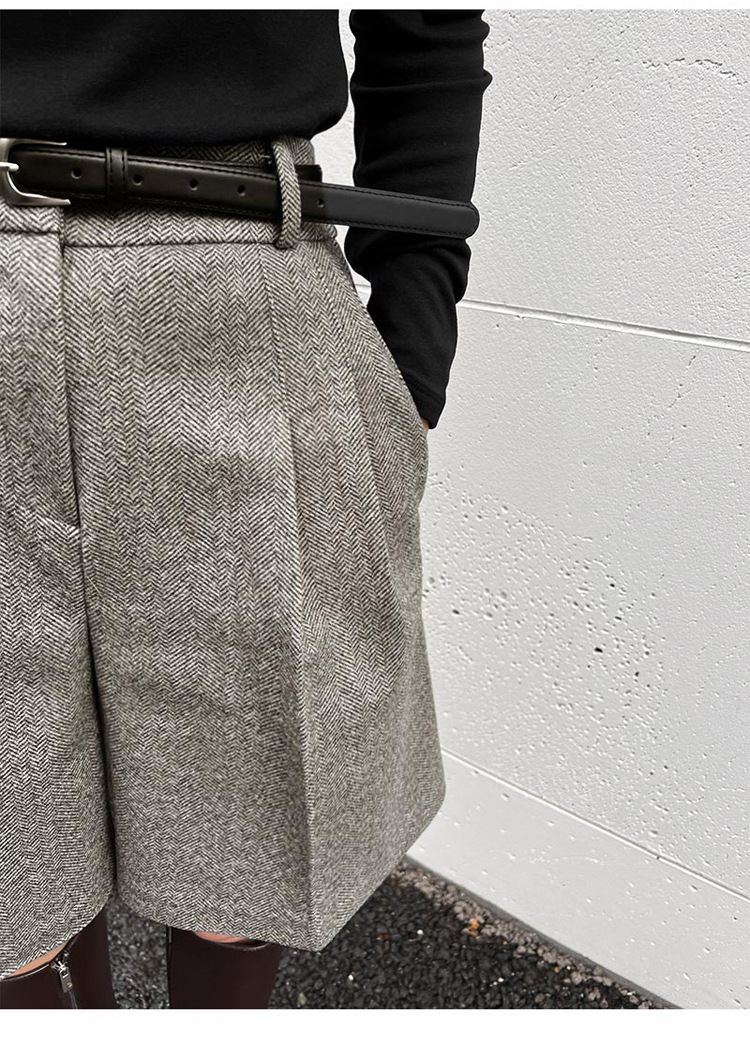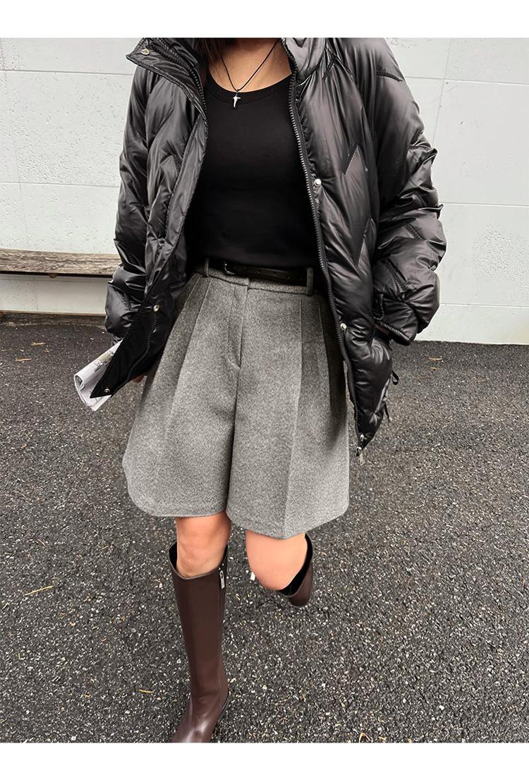 Woolen Shorts High Waist Outer Wear Fifth Pants Small Wide Leg
